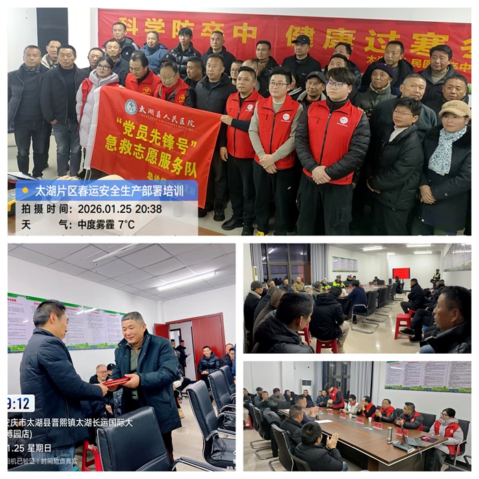 1月25日晚,太湖片區(qū)順利召開了2026年度安全生產(chǎn)暨春運(yùn)春節(jié)動員部署工作會議。此次會議匯聚了太湖縣交管大隊、縣運(yùn)管中心、縣人民醫(yī)院急救中心領(lǐng)導(dǎo)和專家,太湖片區(qū)領(lǐng)導(dǎo)、管理人員及全體駕駛員,共同為即將到來的春運(yùn)工作做好充分準(zhǔn)備。